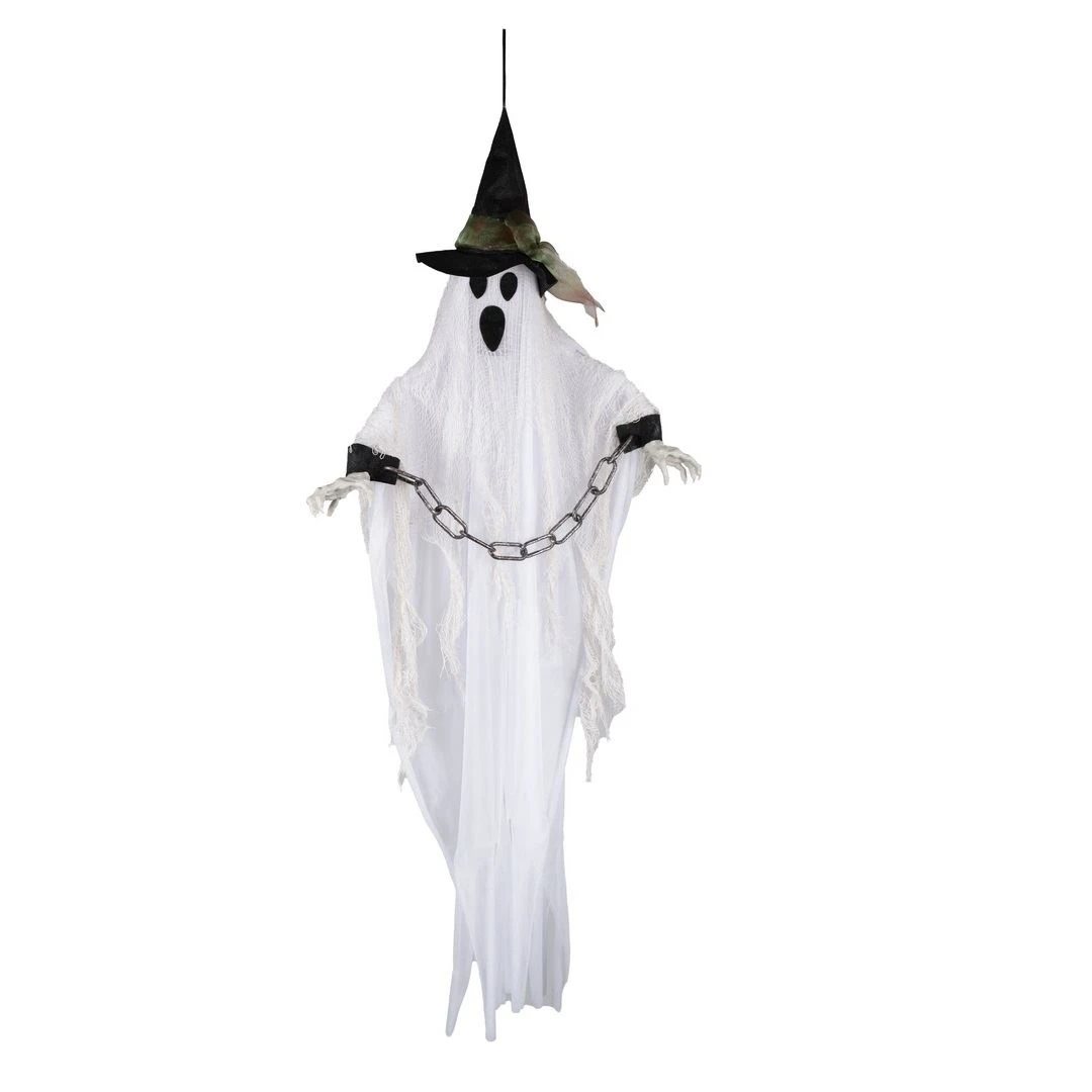Colgante Fantasma Encadenado Infantil – 80 cm Este adorable colgante de fantasma encadenado, con 80 cm de largo, es la adición perfecta para tu decoración de Halloween. Este fantasma travieso, además de asustar, agrega un toque lúdico y festivo a la celebración. Lo que hace que este colgante sea aún más encantador es el simpático gorro de bruja que adorna su cabeza.
