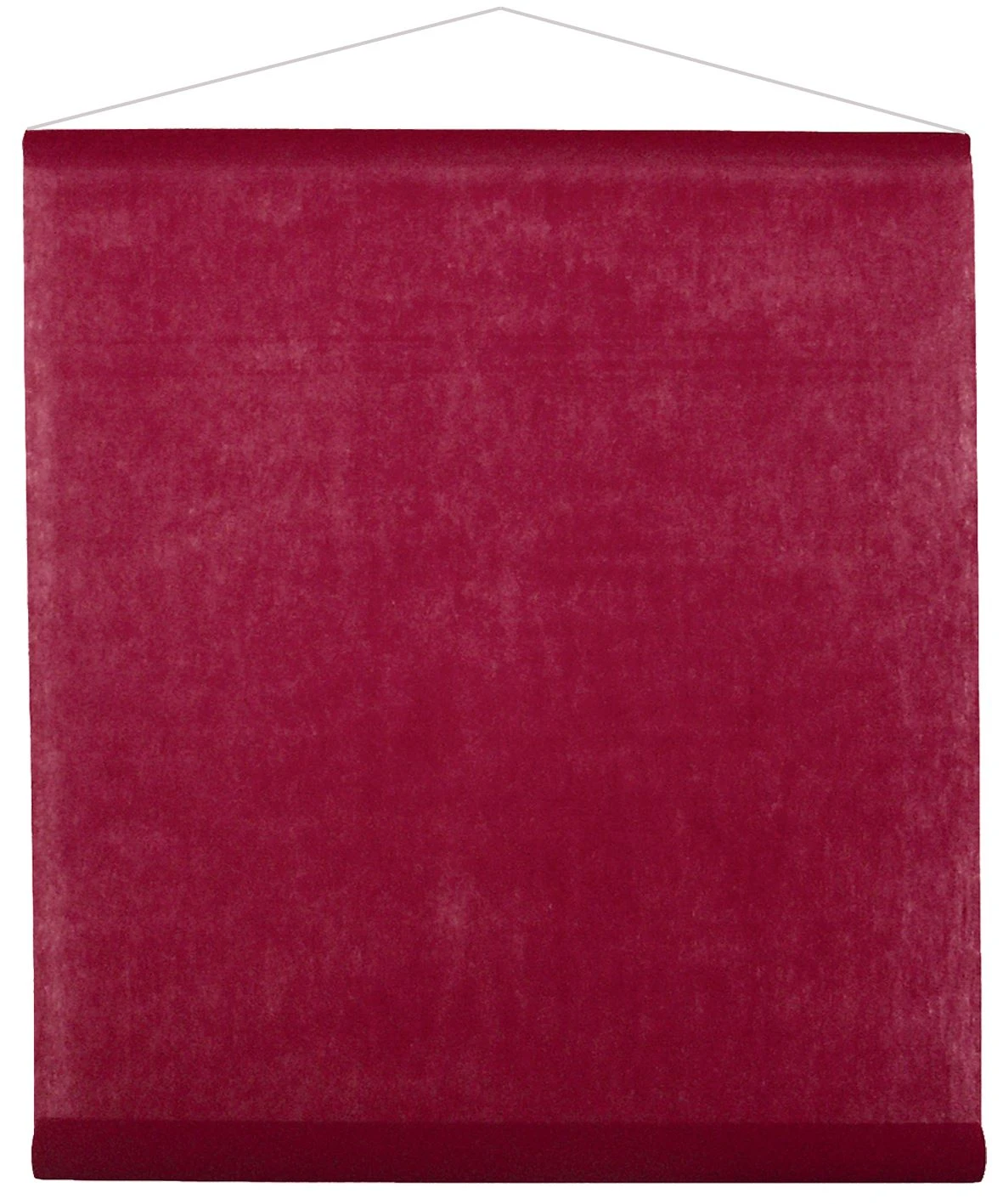 Rollo de tela sin tejer de color burdeos. Puedes vestir salas o decorar jardines. Los extremos incluyen una tubo rígido de cartón con un hilo de plástico transparente para poder engancharlo y mantener la forma. Mide aprox. 12m x 80cm. Este producto no se envía a Baleares debido a su tamaño.