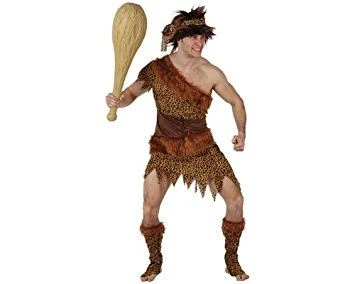 Disfraz de cavernícola, disfraz original y divertido. Ideal para una despedida de soltero. Talla M-L. Mide aprox pecho 100-110, de cintura 95-105 y de cadera 105-115. Contiene el disfraz de cavernícola, cinta para el pelo y las espinilleras.