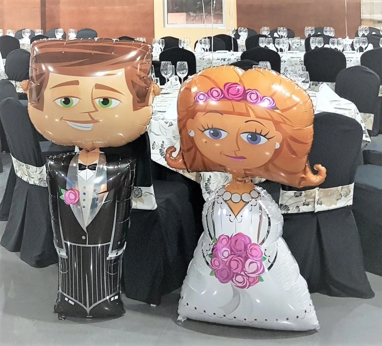 Un globo foil impactante con forma de novia. Se infla con helio, y los pesitos en sus pies le hacen bailar por la sala. Dura días, y se puede volver a inflar una y otra vez. Mide aprox. 1,22 x 71cm. Viene sin inflar.