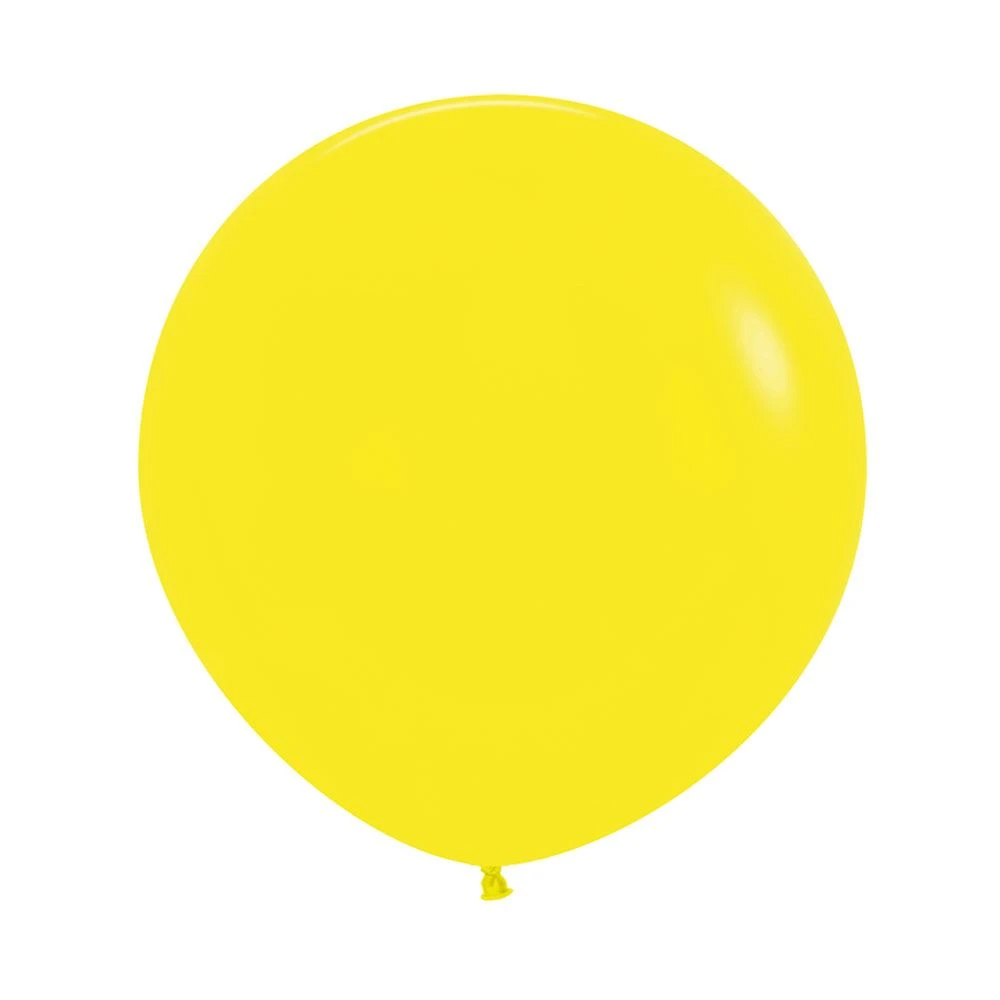 Globos de látex grandes de la marca Sempertex®, para inflar con aire o helio. De color Amarillo, idóneos para decoraciones y juegos. Añádele color y alegría a tu celebración. Inflados miden aprox. 60cm de diámetro. Paquete de 10. R24-020.