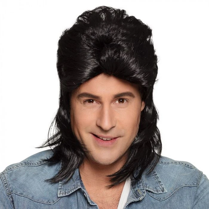 Peluca de hombre estilo años 80 en color Moreno. Pásalo bien en tu fiesta de disfraces o fiesta temática años 80, con esta divertida peluca. Talla única.